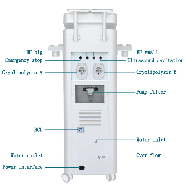1. The machine has 5 hand piece. It combines the Cryolipolysis, Cavitation and RF, 4 popular slimming technologies in one machine, can reduce unwanted fat in any area of the body.